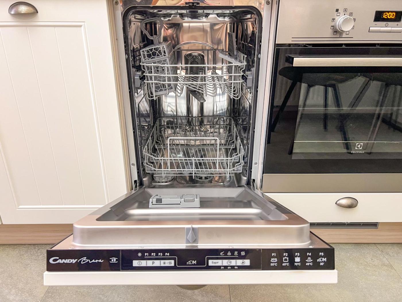 One-Bedroom Apartment. This air-conditioned apartment comprises 1 living room, 1 separate bedroom and 1 bathroom with a shower. In the well-equipped kitchen, guests will find a stovetop, a refrigerator, a dishwasher and kitchenware. The apartment provides a washing machine, a coffee machine, a dining area, a wardrobe, as well as a flat-screen TV with streaming services. The unit offers 2 beds.
